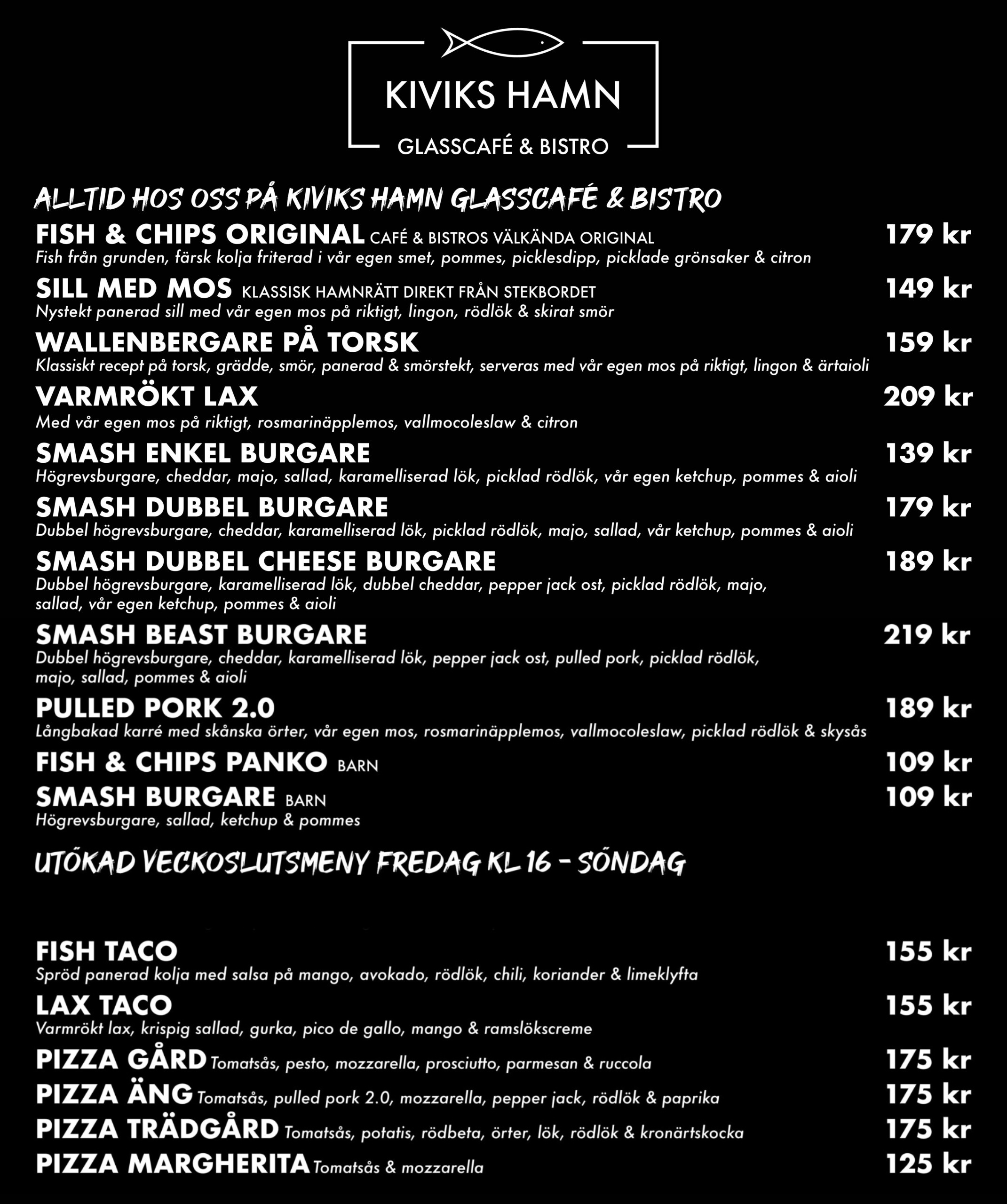 Se vår fullständiga meny nedan.